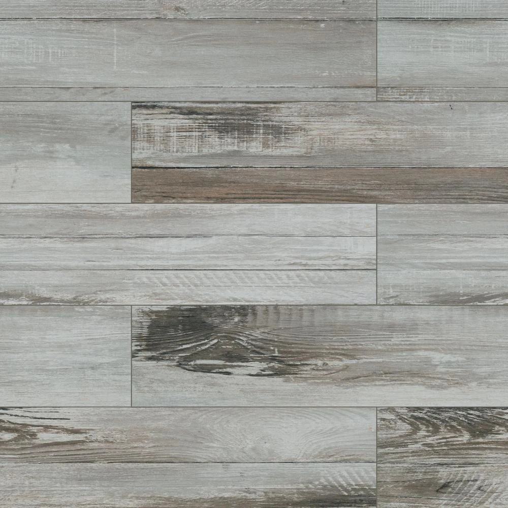 A style trifecta defines this Duttonwood Ash 7 in. x 20 in. Ceramic Floor and Wall Tile. Combining a sleek, smooth finish, with a handsome gray tone, this tile provides the durability of a ceramic with the wood grain look. A medium-sheen glaze and slight variation in tone to allow the tile to elegantly blend with and complement a variety of decor. Ideal for indoors and some outdoor applications, the stellar wood grigio provides the best of both worlds in high quality ceramic tile that looks like wood.